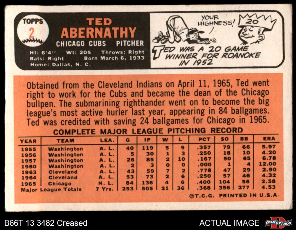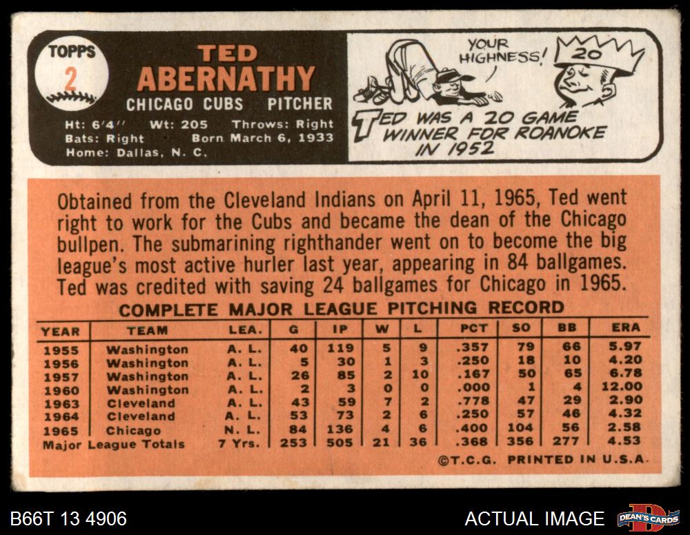 1966 Topps #2 Ted Abernathy 2 - GOOD