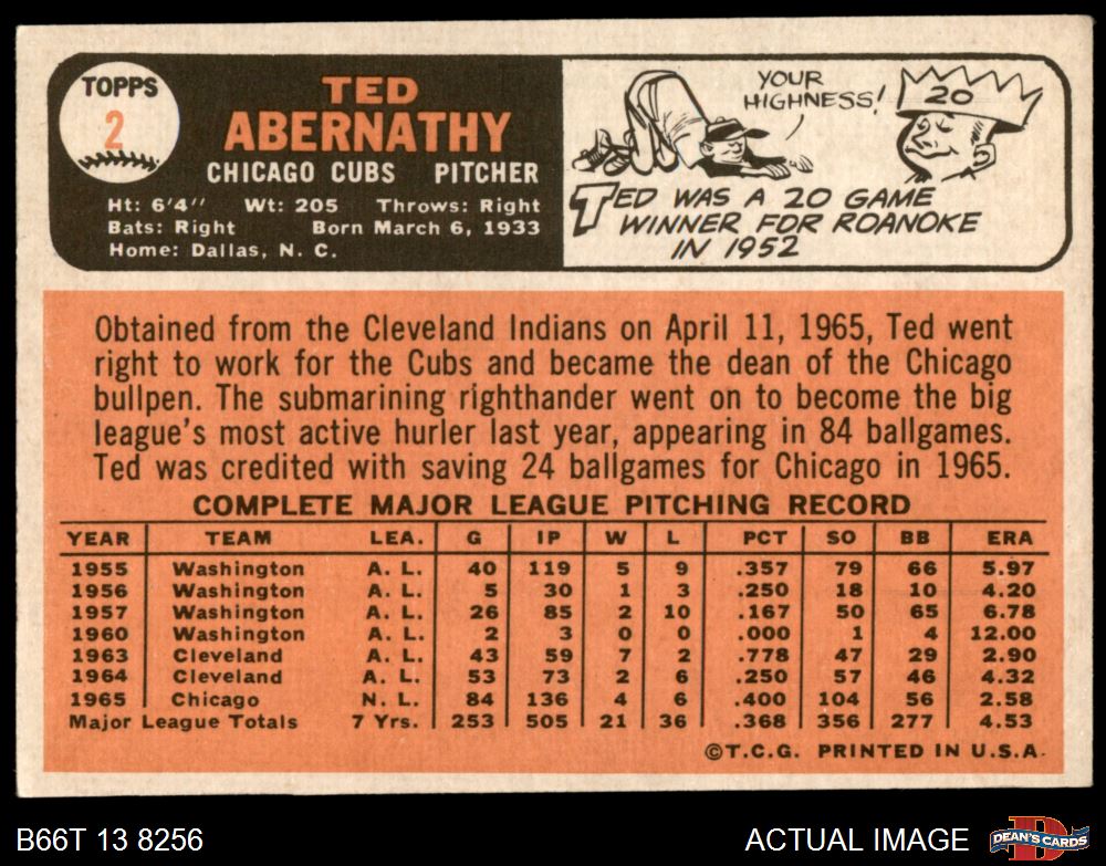 1966 Topps #2 Ted Abernathy 4 - VG/EX