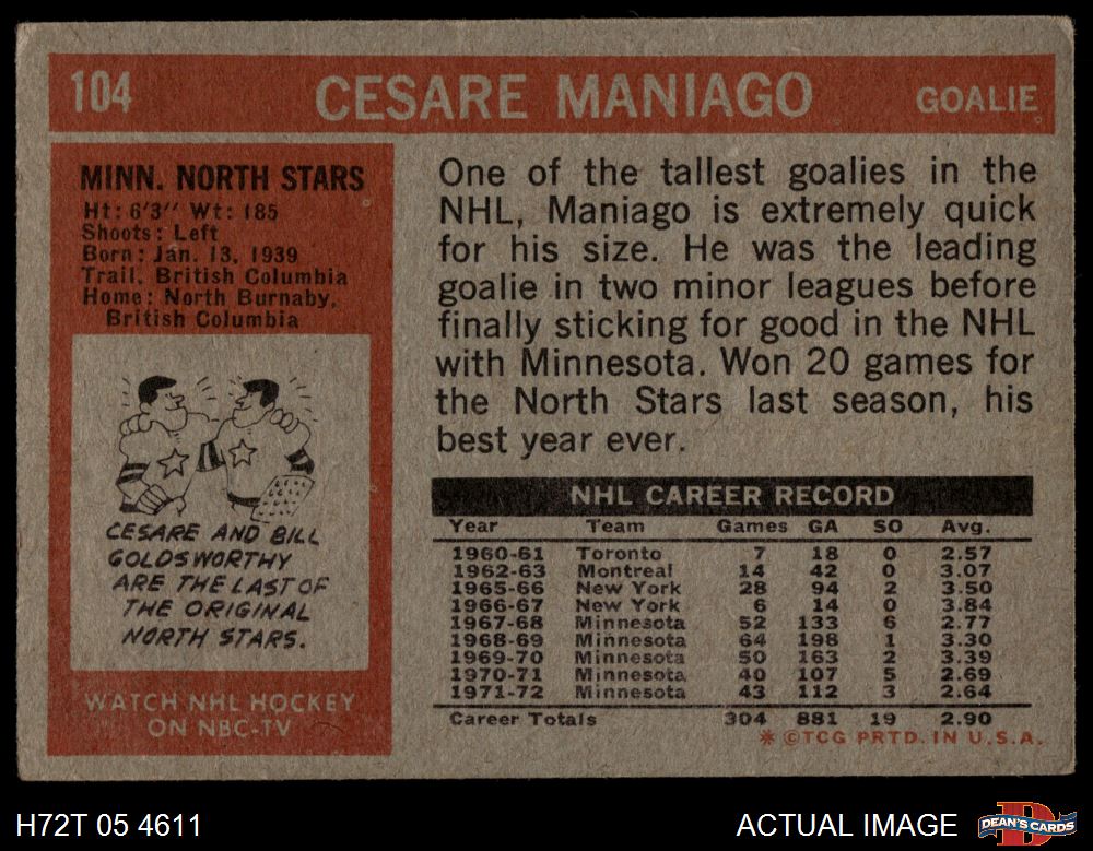 1972 Topps #104 Cesare Maniago 3 - VG