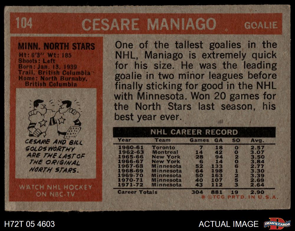 1972 Topps #104 Cesare Maniago 4 - VG/EX