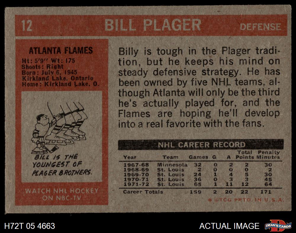 1972 Topps #12 Bill Plager 4 - VG/EX