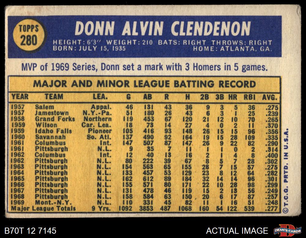 1970 Topps #280 Donn Clendenon 1 - POOR