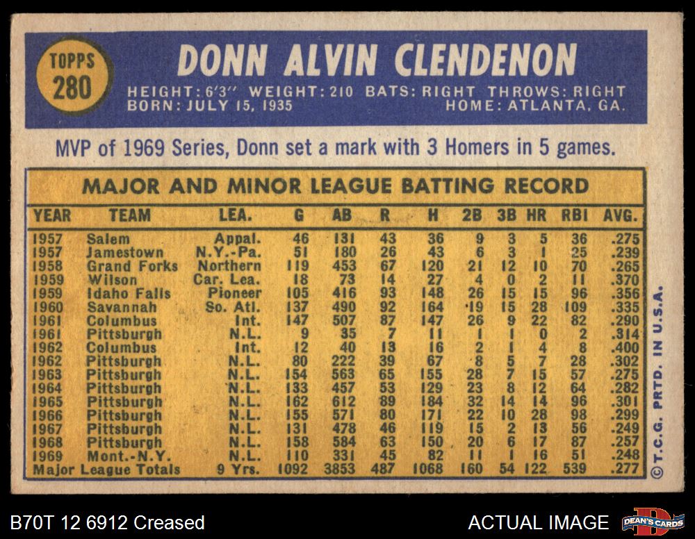 1970 Topps #280 Donn Clendenon Front Thumbnail