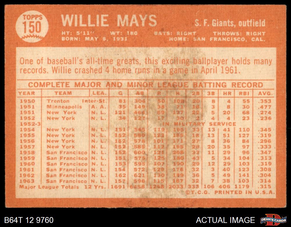 1964 Topps #150 Willie Mays