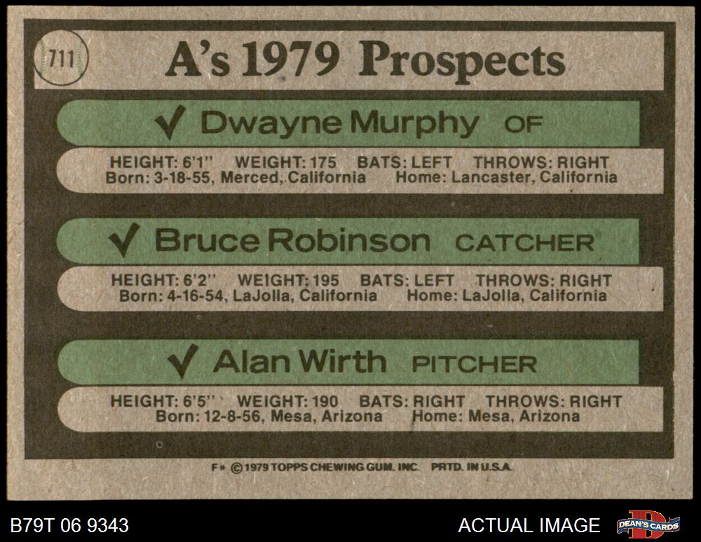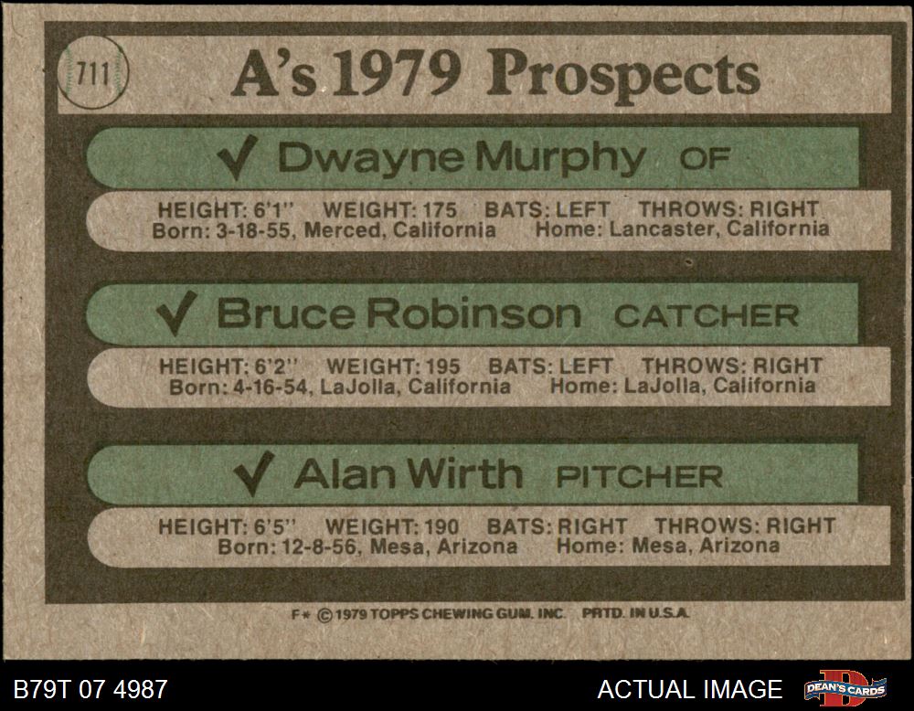1979 Topps #711 - Dwayne Murphy / Bruce Robinson / Alan Wirth A's Prospects 6 - EX/MT