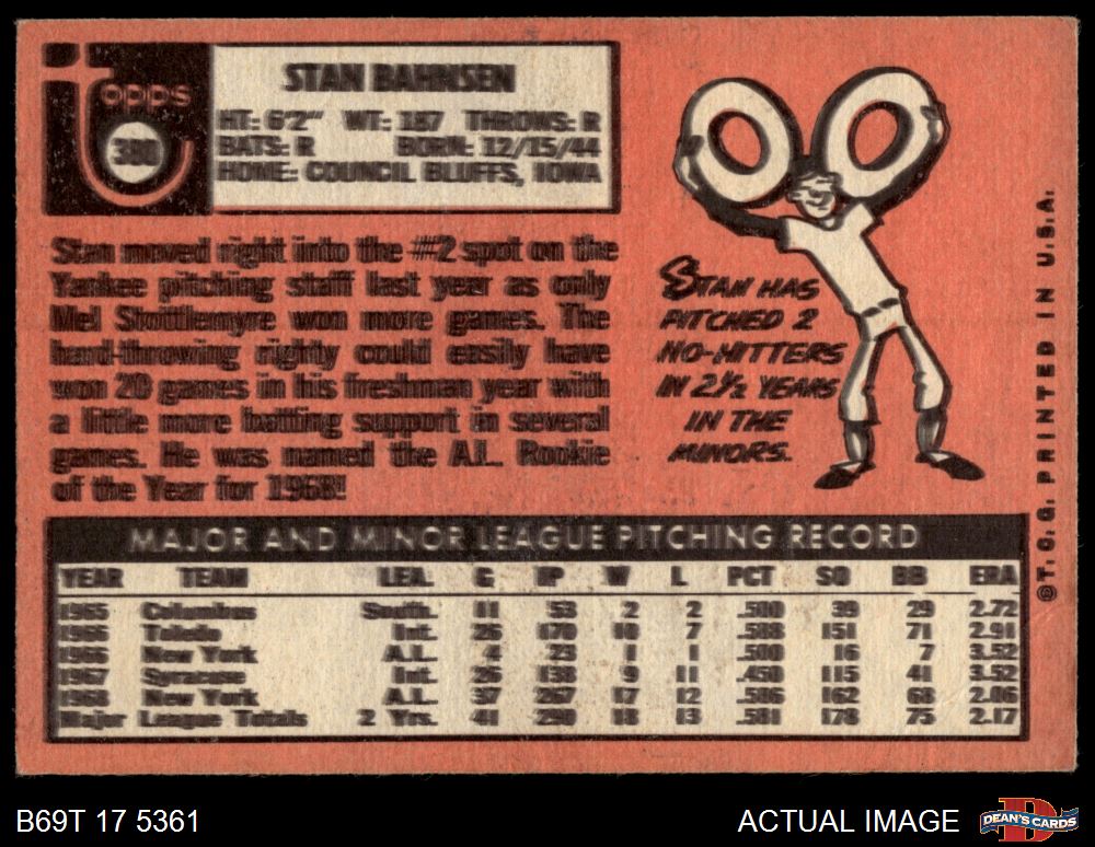 1969 Topps #380 Stan Bahnsen 3.5 - VG+