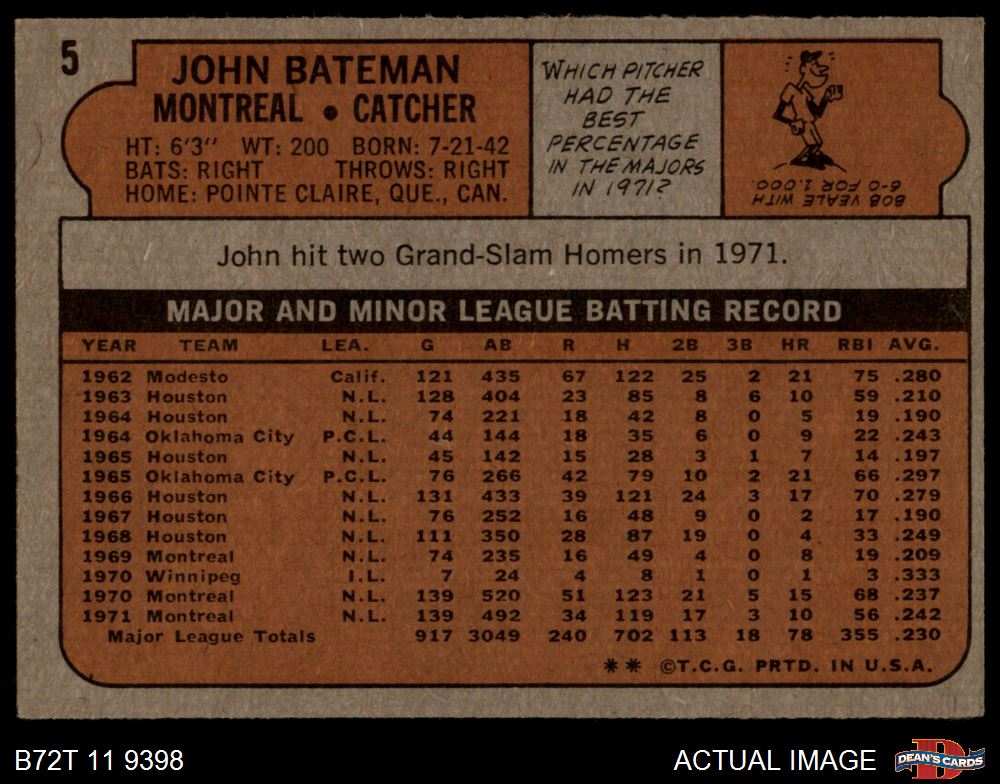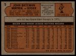1972 Topps #5 John Bateman 5 - EX