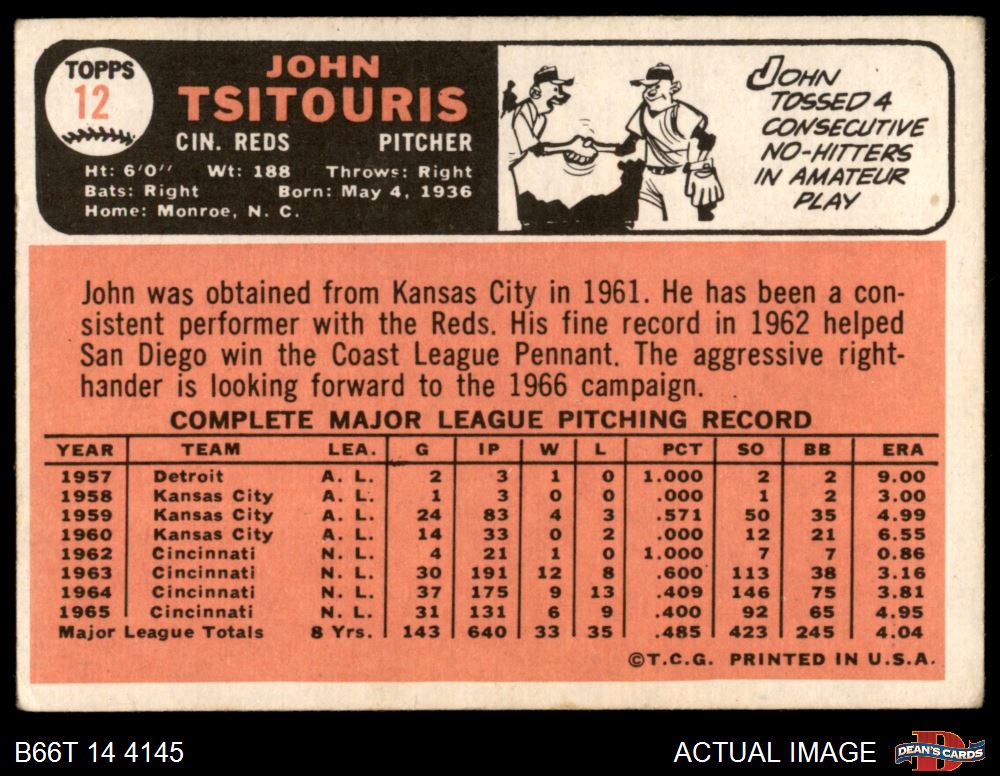 1966 Topps #12 John Tsitouris
