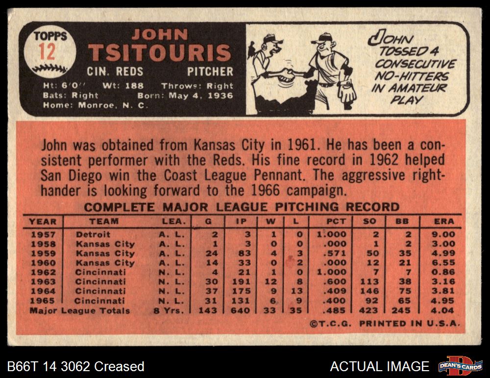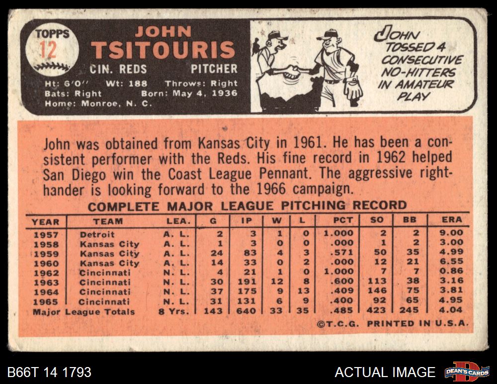 1966 Topps #12 John Tsitouris 2 - GOOD