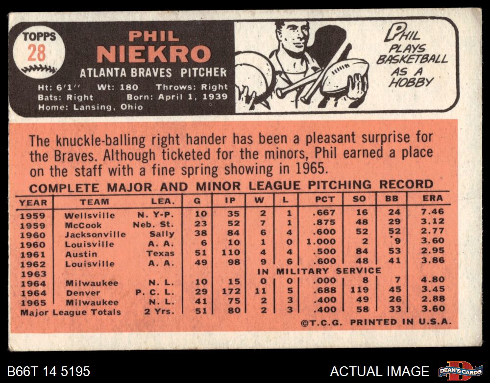 1966 Topps #28 Phil Niekro 2 - GOOD