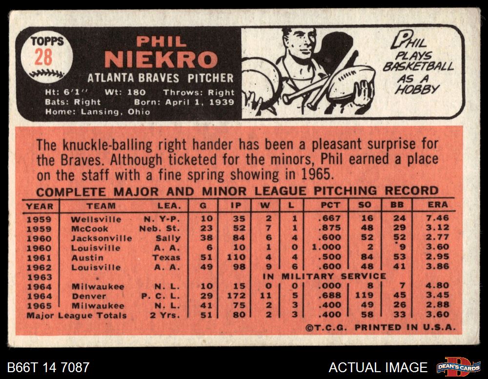 1966 Topps #28 Phil Niekro 2.5 - GD+