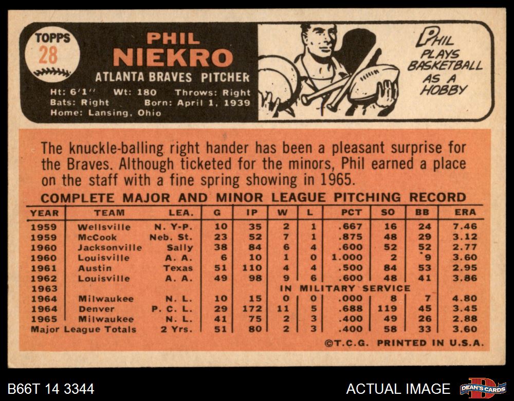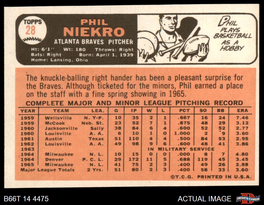 1966 Topps #28 Phil Niekro 4 - VG/EX