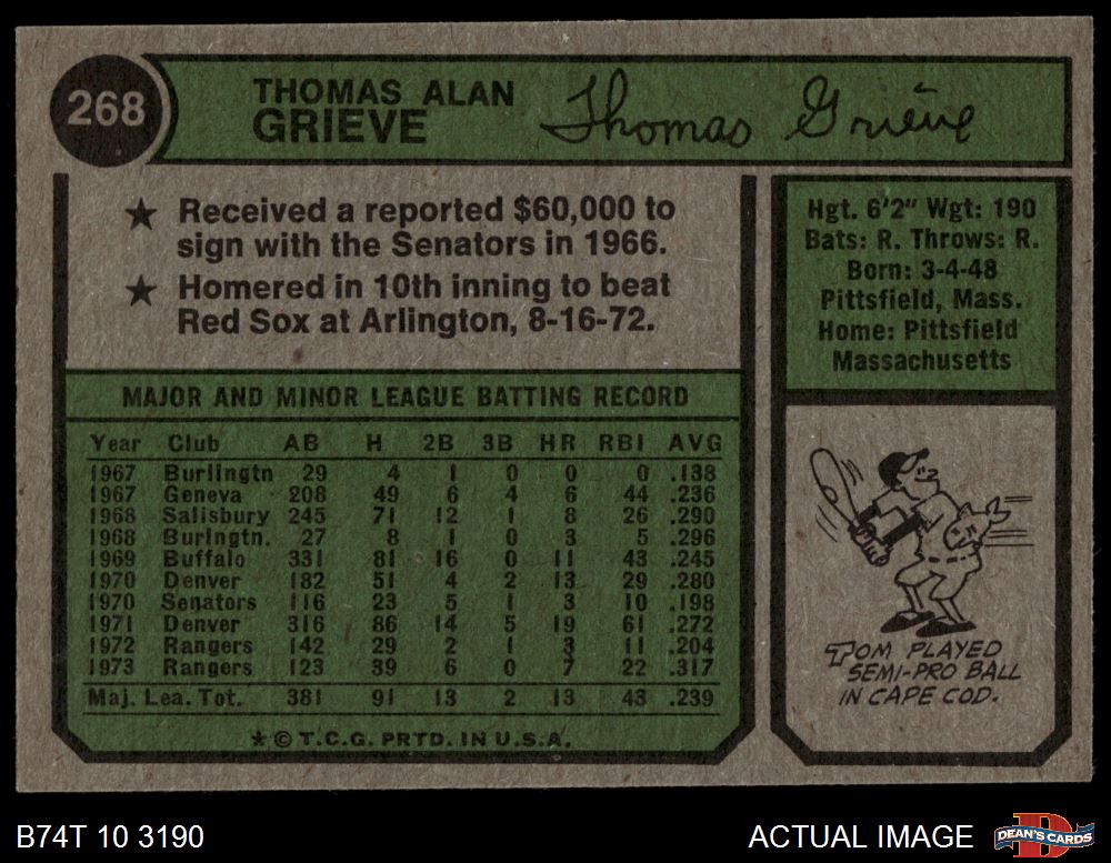 1974 Topps #268 Tom Grieve 8 - NM/MT