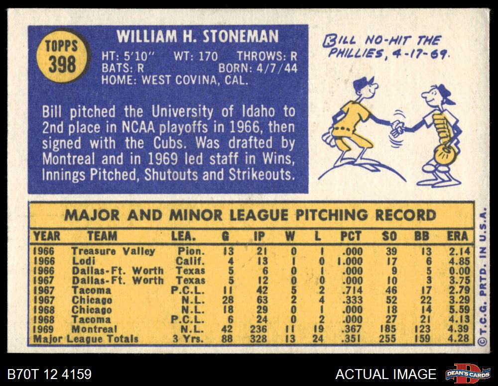 1970 Topps #398 Bill Stoneman