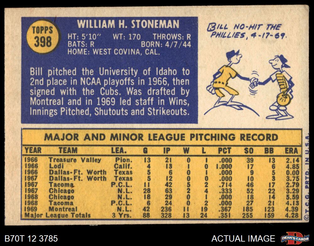 1970 Topps #398 Bill Stoneman 4 - VG/EX