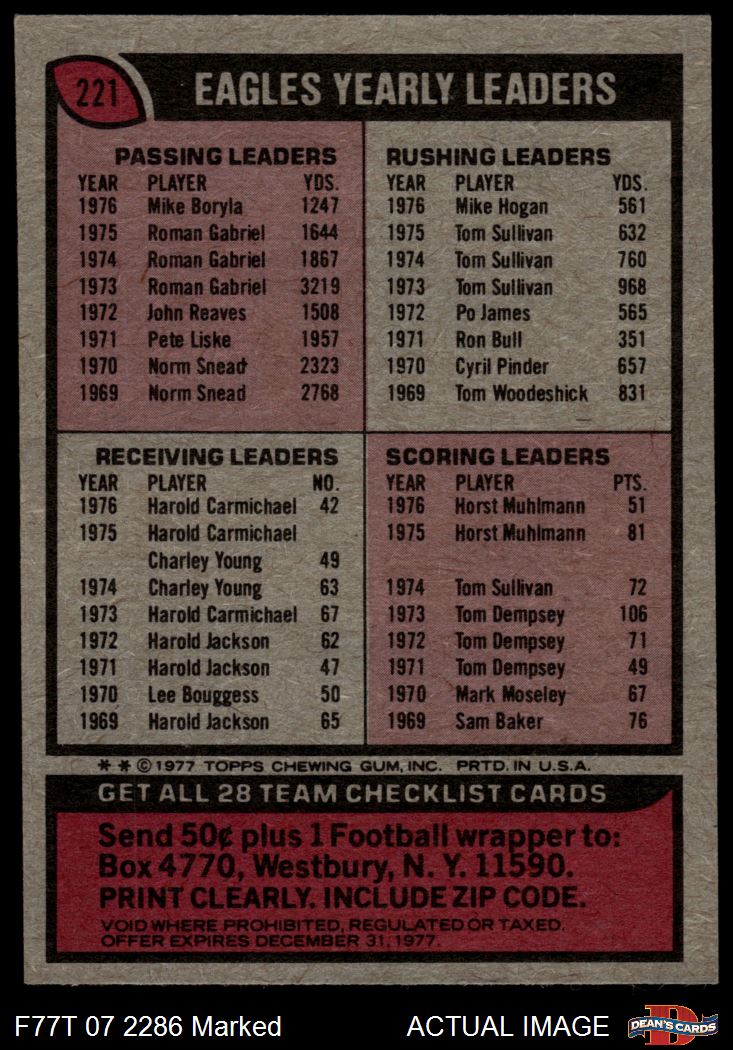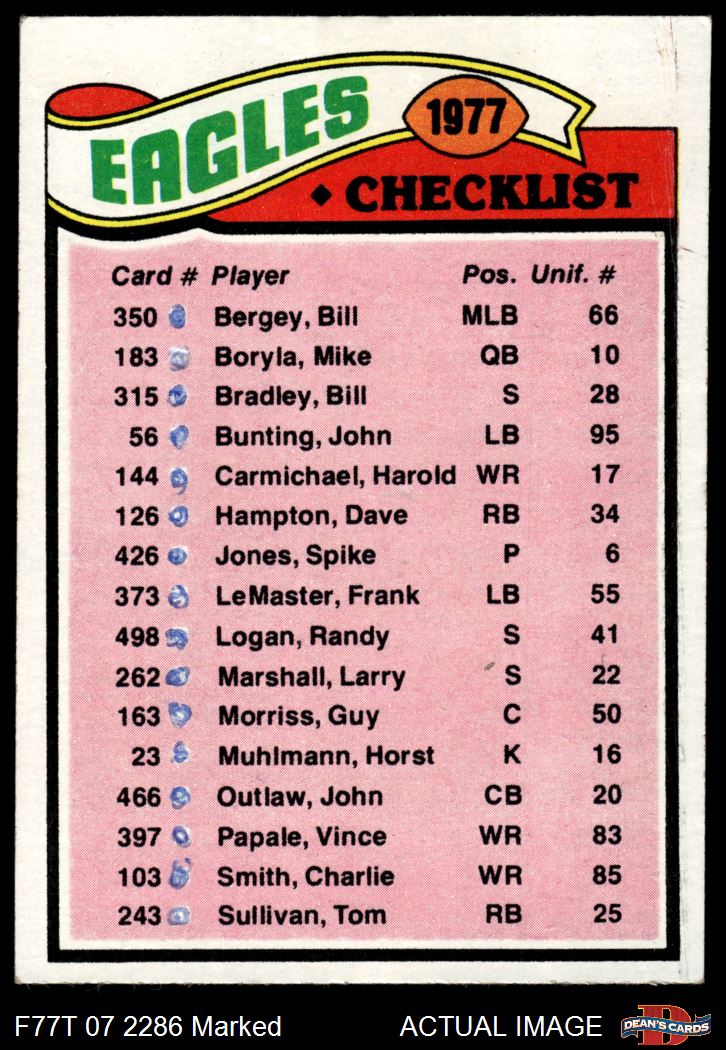 1977 Topps #221  Eagles Team Checklist Front Thumbnail