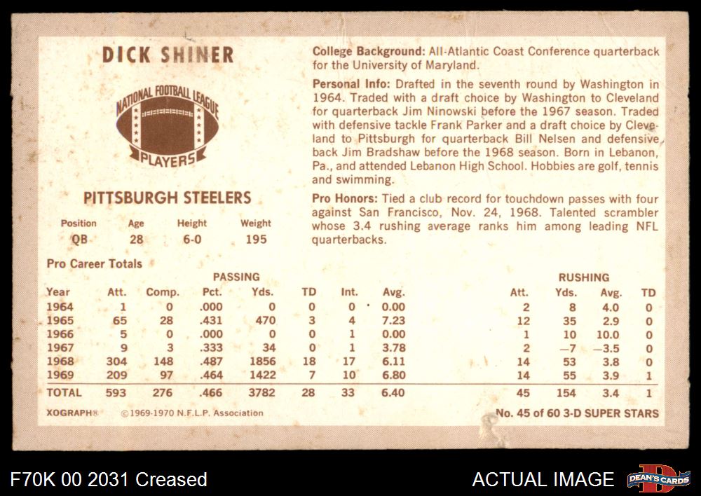 1970 Kellogg's #45 Dick Shiner 3 - VG