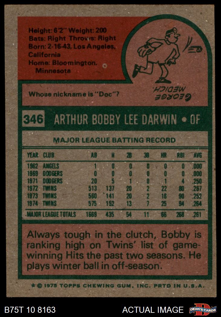 1975 Topps #346 Bobby Darwin 7 - NM