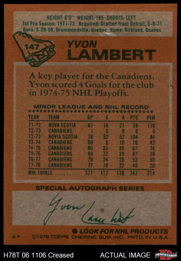 1978 Topps #147 Yvon Lambert 2 - GOOD