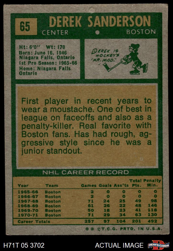1971 Topps #65 Derek Sanderson 1.5 - FAIR