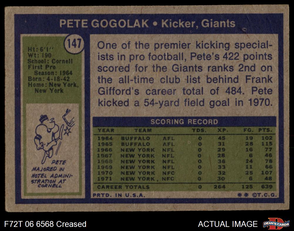 1972 Topps #147 Pete Gogolak Front Thumbnail