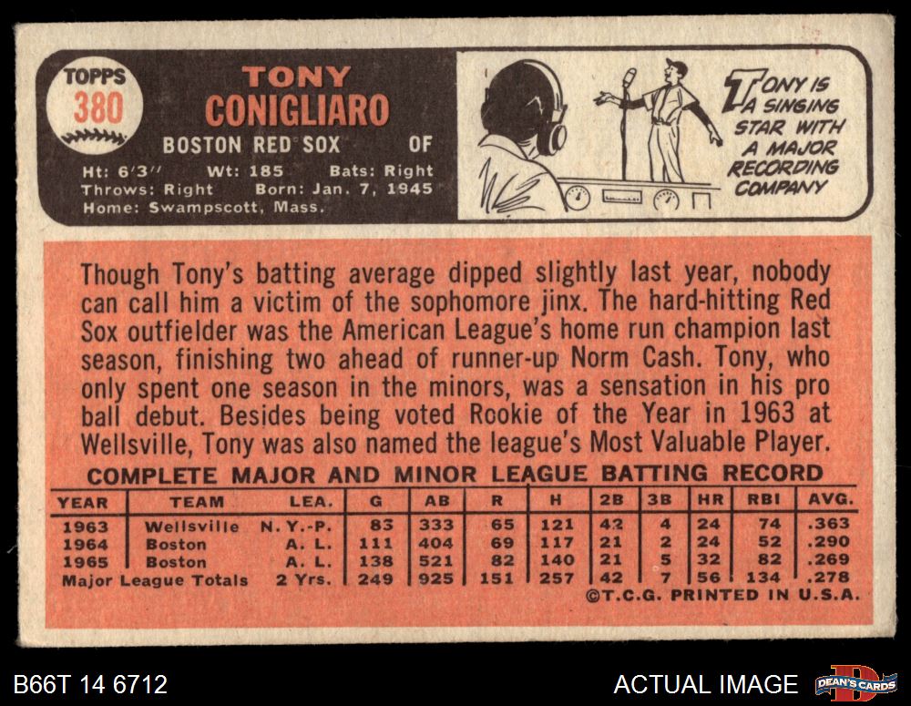 1966 Topps #380 Tony Conigliaro 2 - GOOD