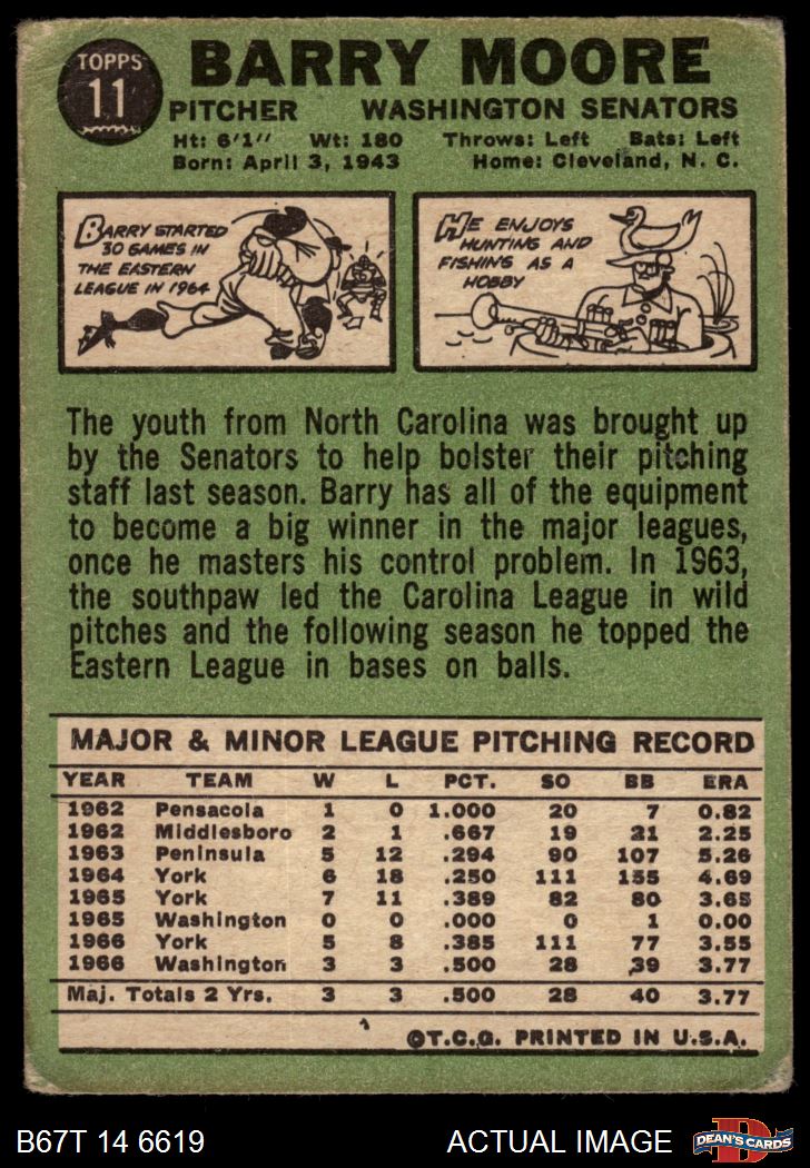 1967 Topps #11 Barry Moore 1 - POOR
