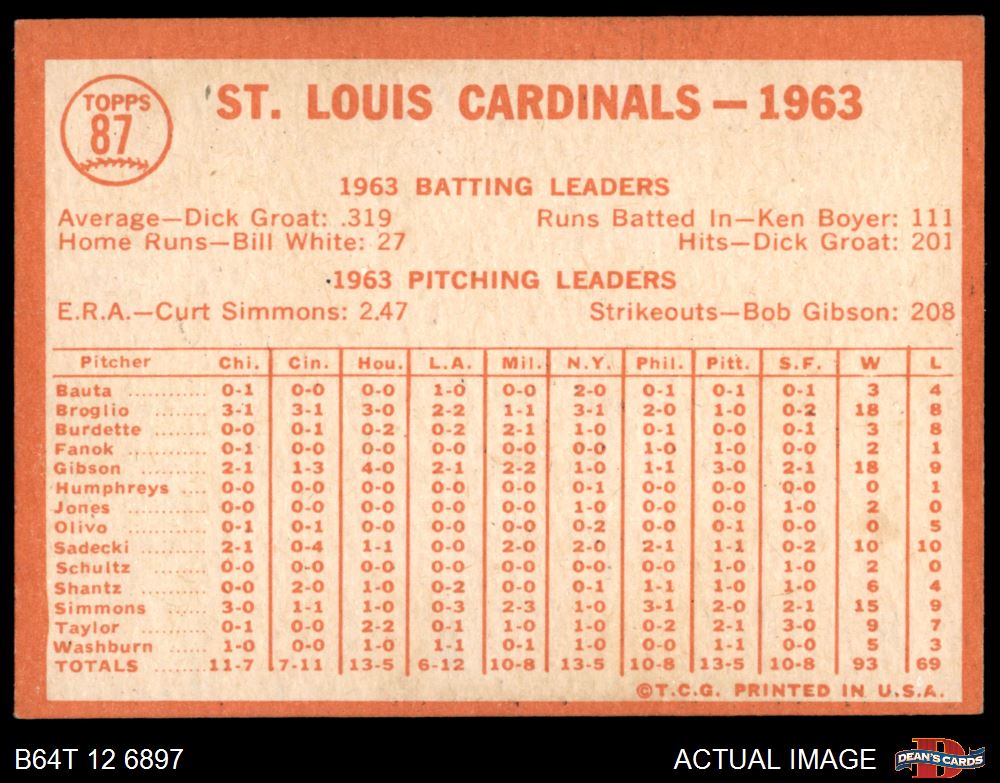 1964 Topps #87 Cardinals Team 4 - VG/EX