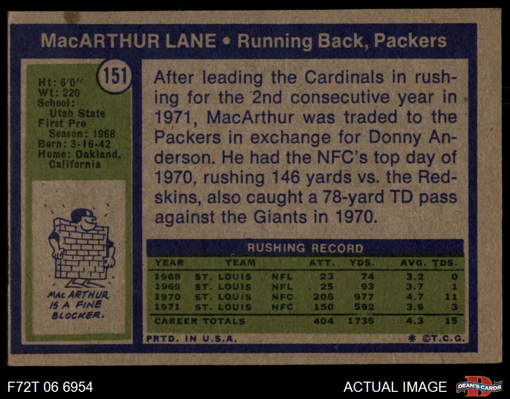 1972 Topps #151 MacArthur Lane 3 - VG