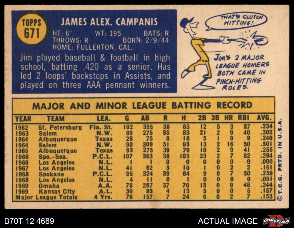 1970 Topps #671 Jim Campanis 7.5 - NM+