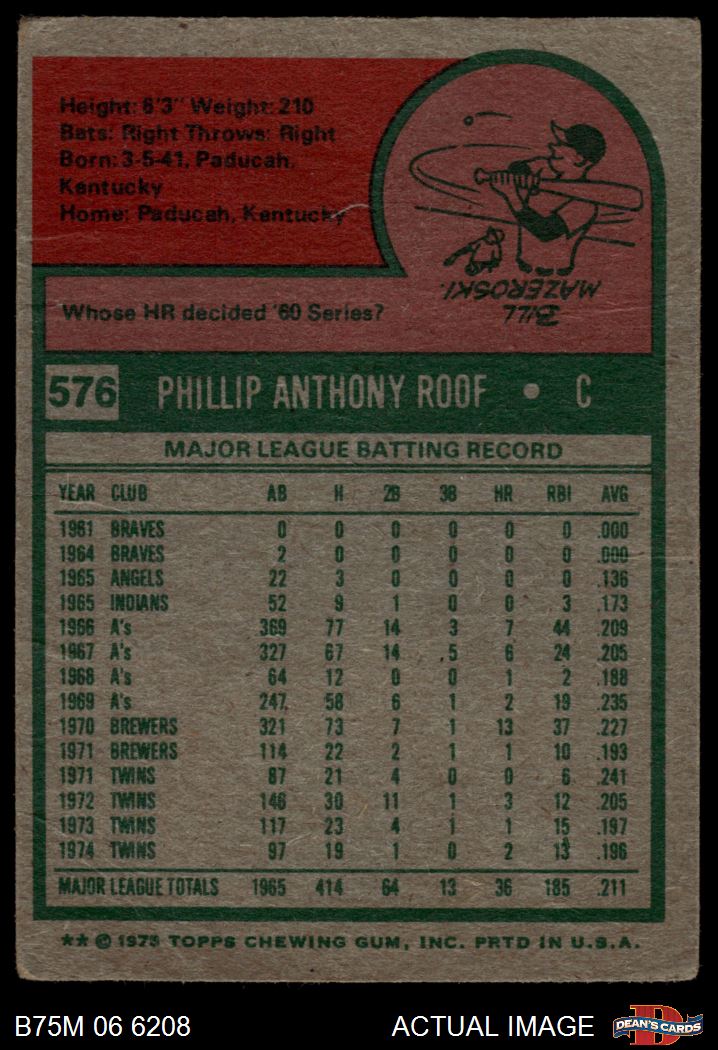 1975 Topps Mini #576 Phil Roof 1 - POOR