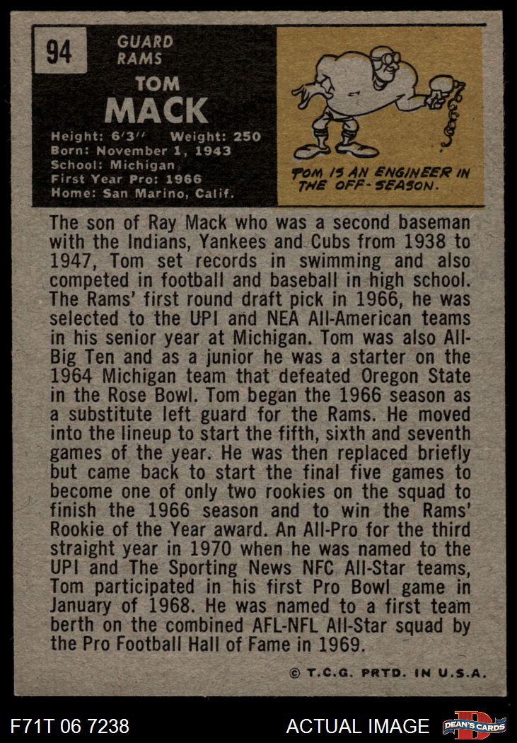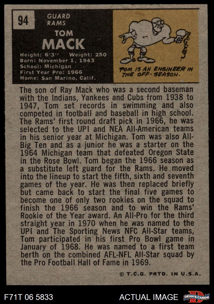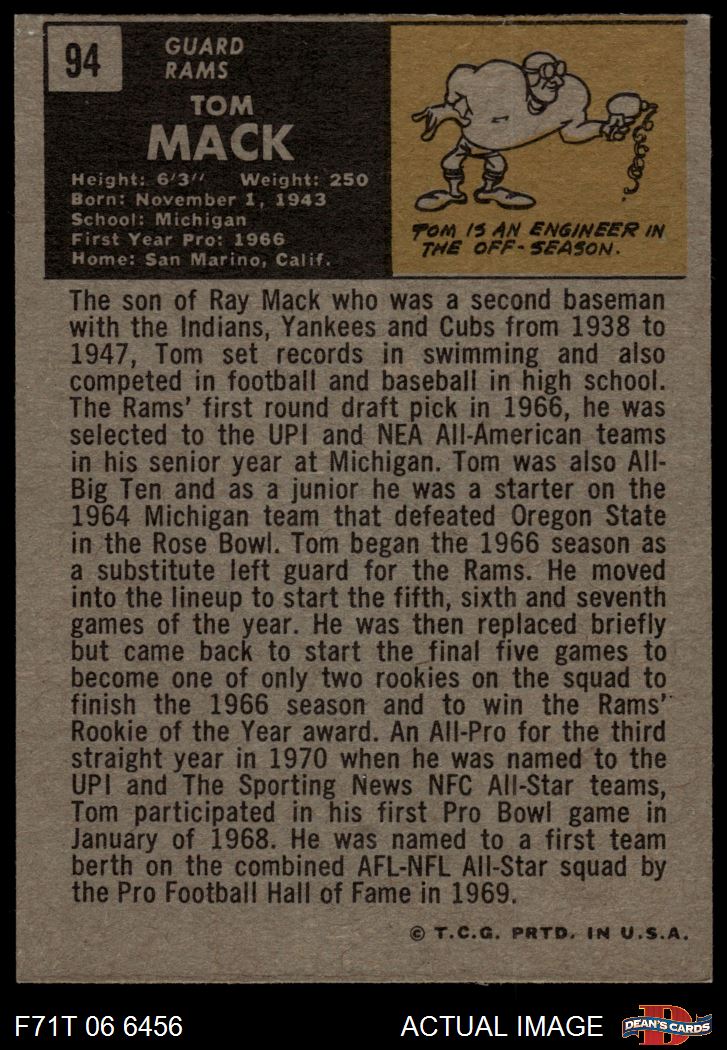 1971 Topps #94 Tom Mack 5 - EX