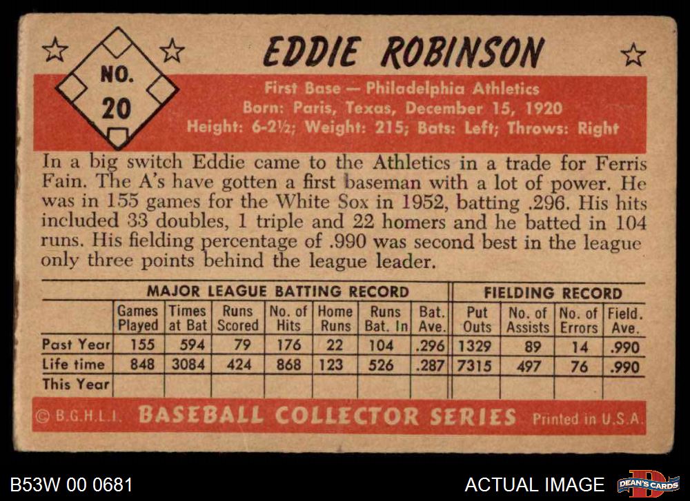 1953 Bowman B&W #20 Eddie Robinson Front Thumbnail