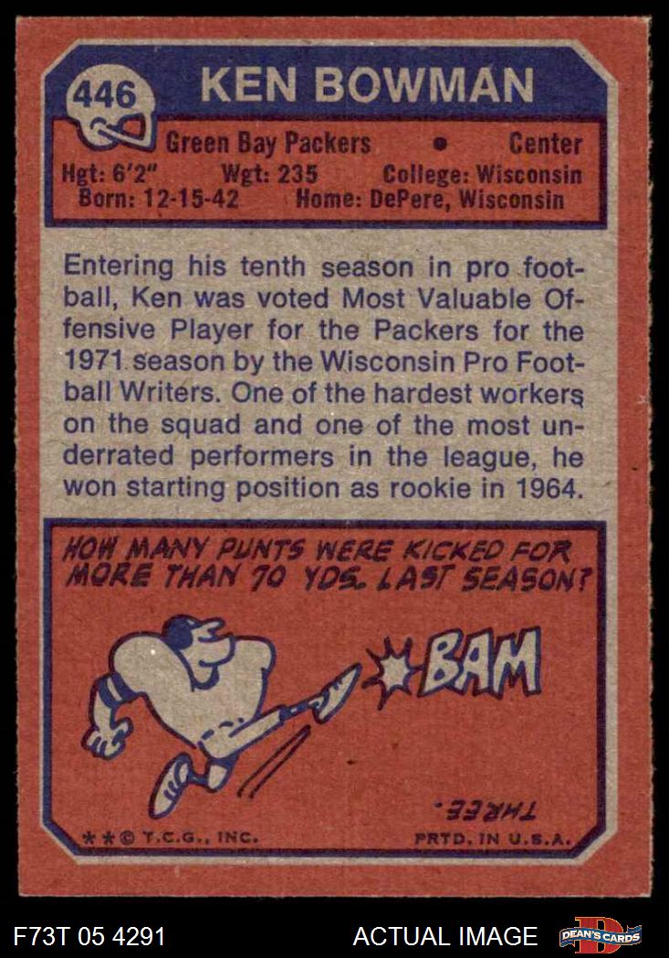 1973 Topps #446 Ken Bowman 4 - VG/EX