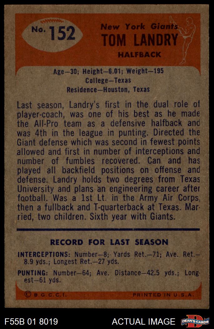 1955 Bowman #152 Tom Landry 4 - VG/EX