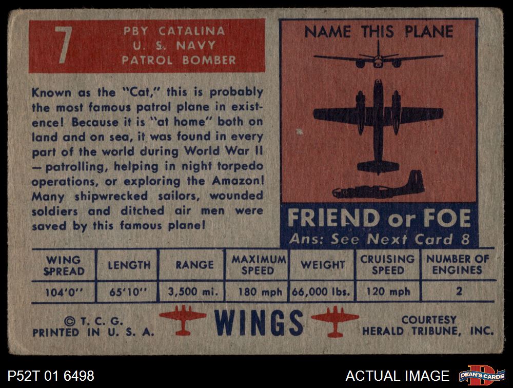 1952 Topps Wings #7 PBY Catalina 2 - GOOD