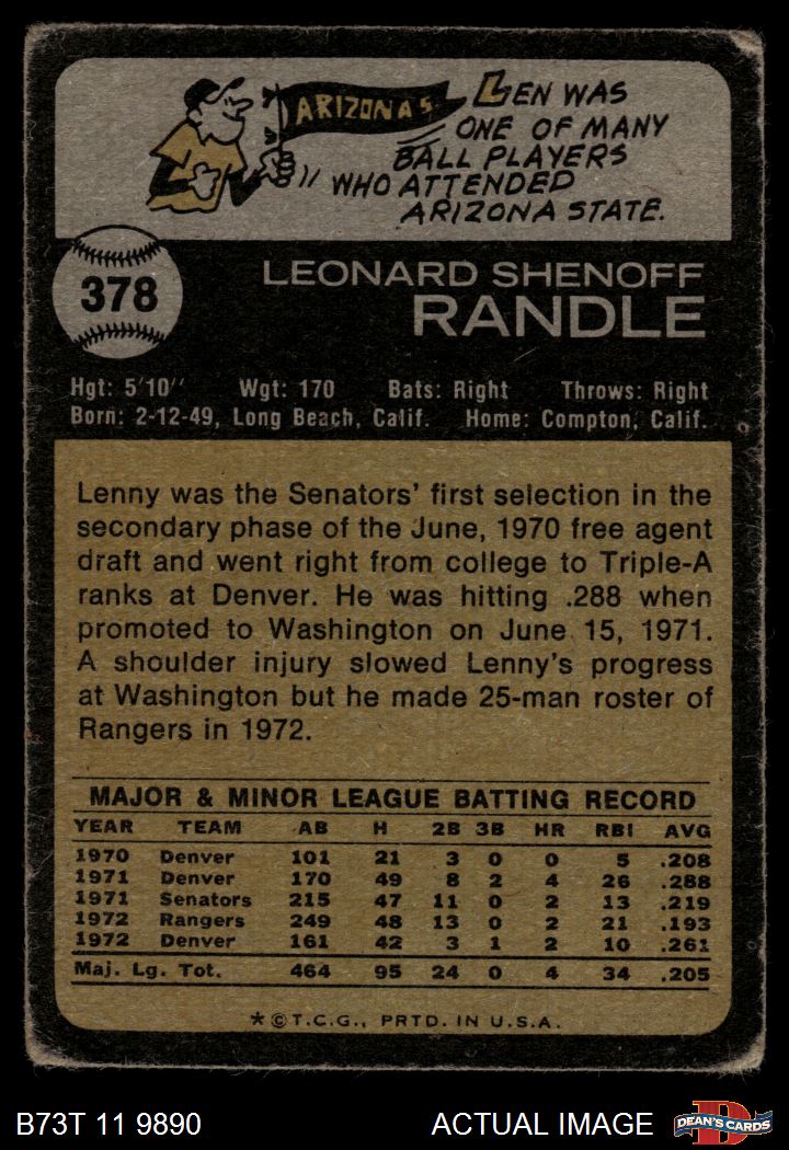 1973 Topps #378 Len Randle 1 - POOR