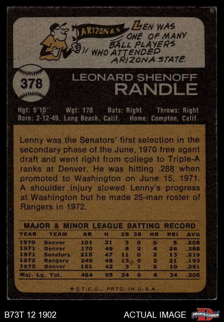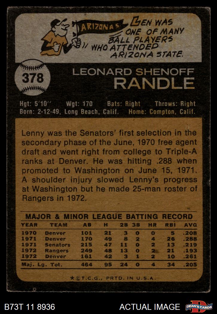 1973 Topps #378 Len Randle 3 - VG