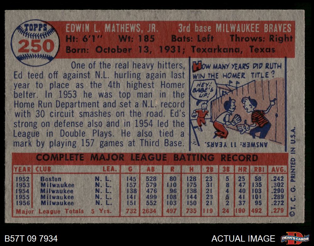 1957 Topps #250 Eddie Mathews 4 - VG/EX