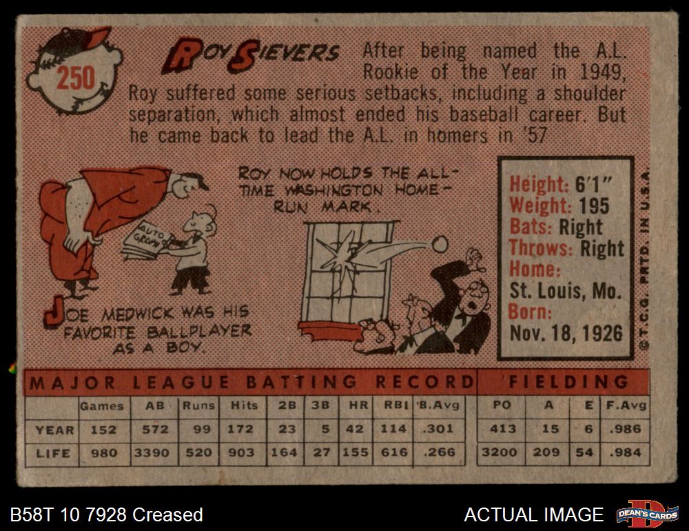 1958 Topps Baseball Cards (8,790 available)1958 Topps Senators (624 available)