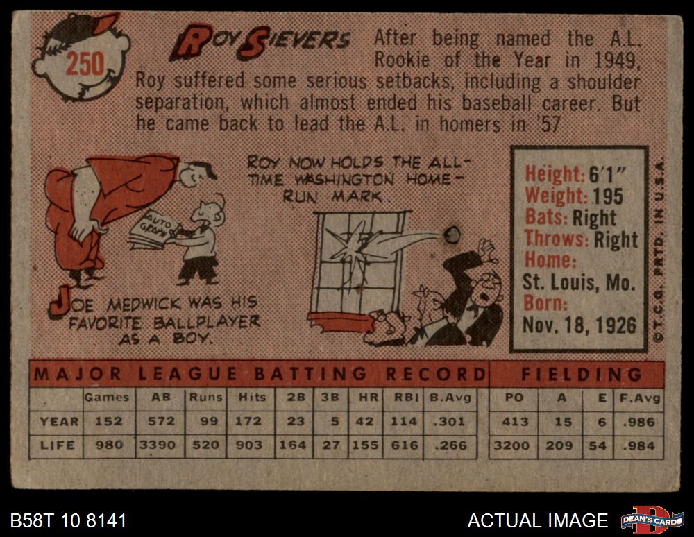 1958 Topps #250 Roy Sievers 2 - GOOD