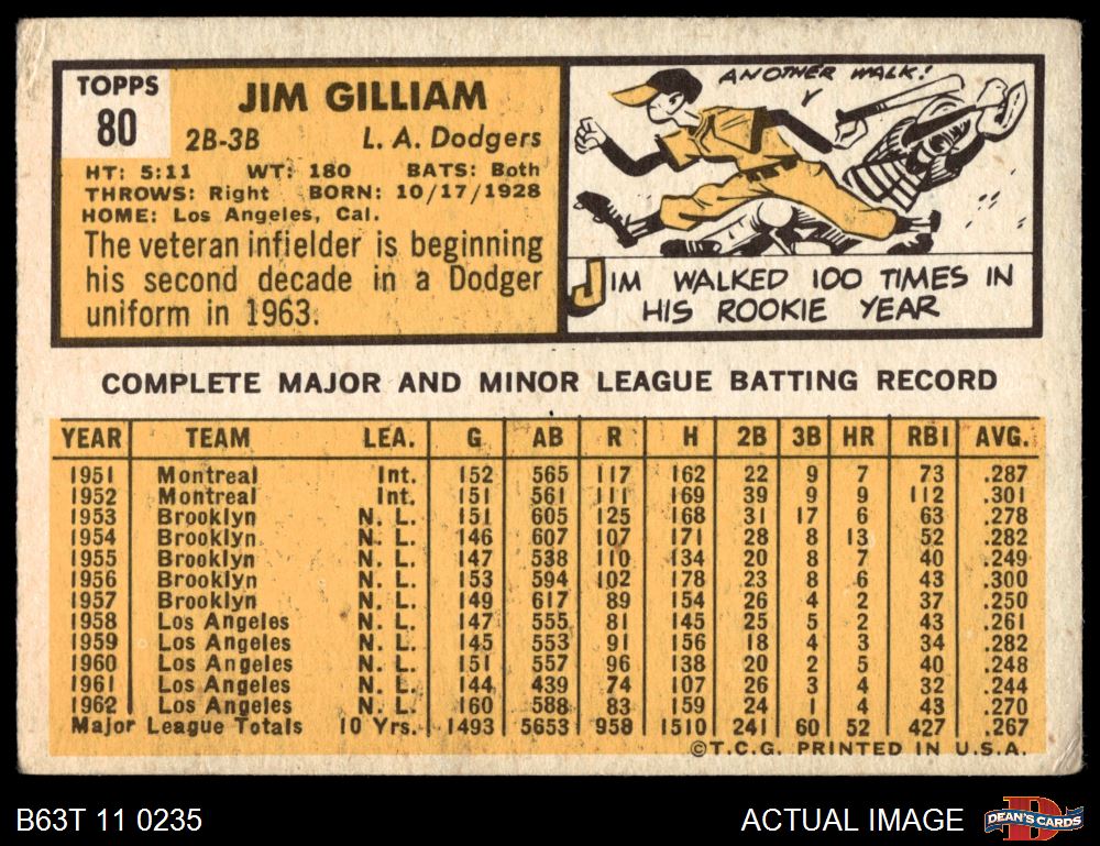1963 Topps #80 Jim Gilliam