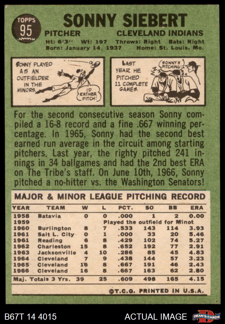 1967 Topps #95 xGL Sonny Siebert 7 - NM