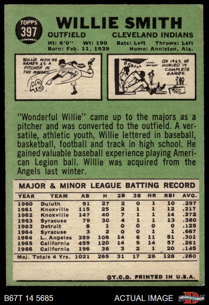 1967 Topps #397 Willie Smith Front Thumbnail