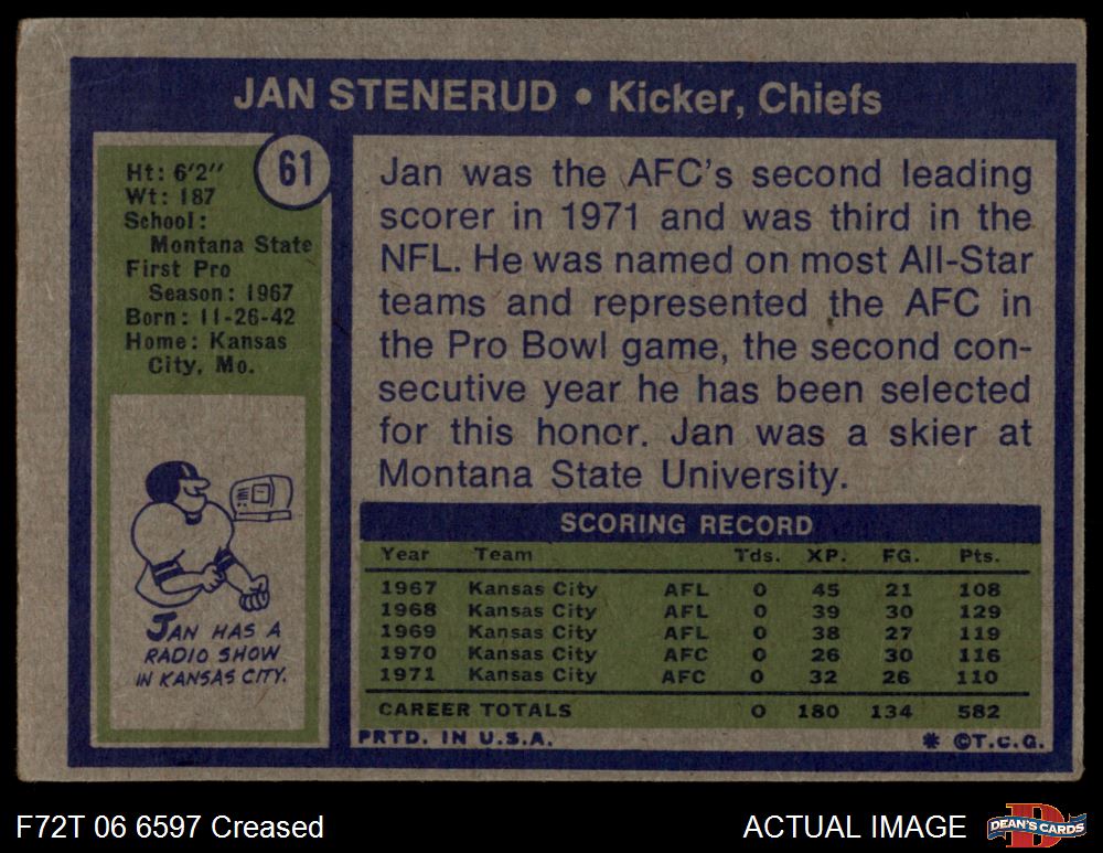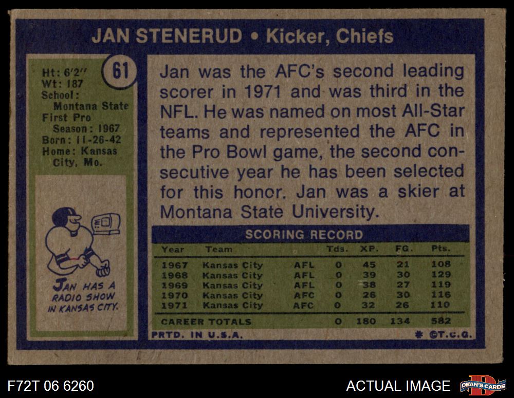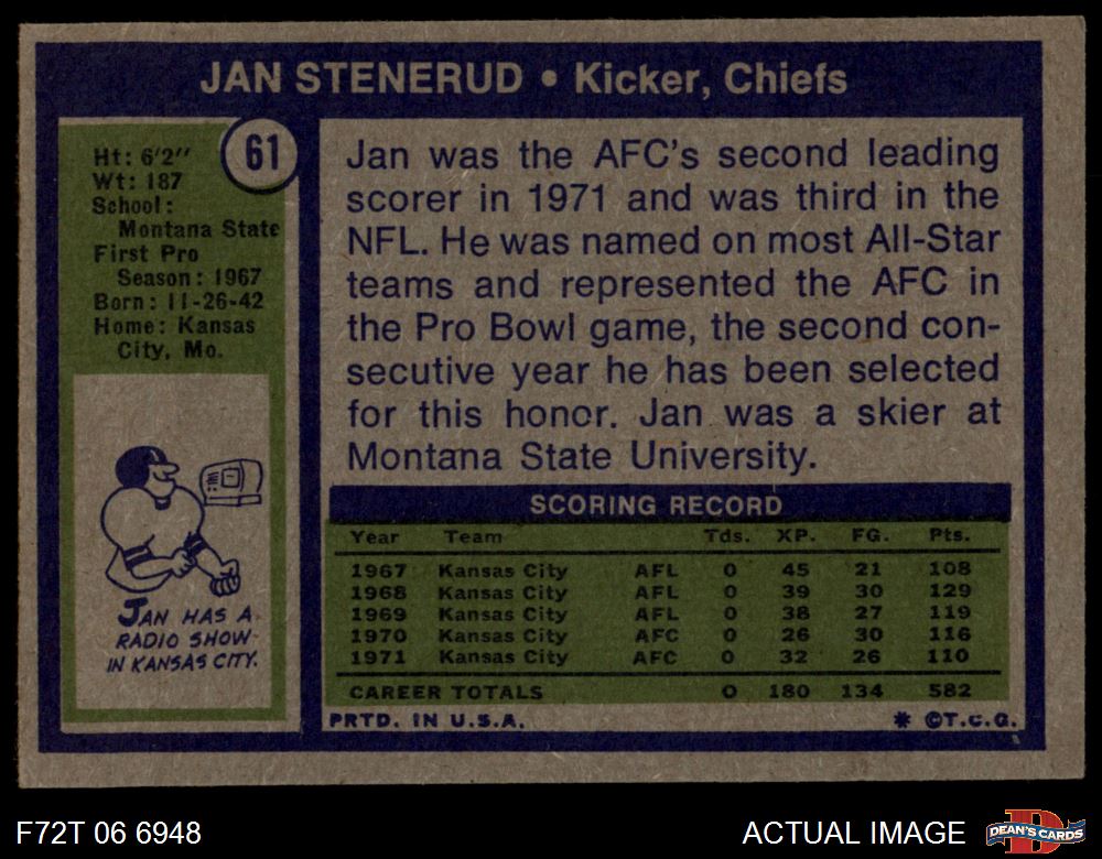 1972 Topps #61 Jan Stenerud
