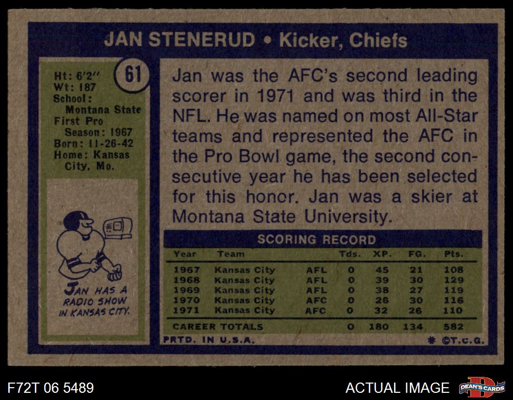 1972 Topps #61 Jan Stenerud 6 - EX/MT