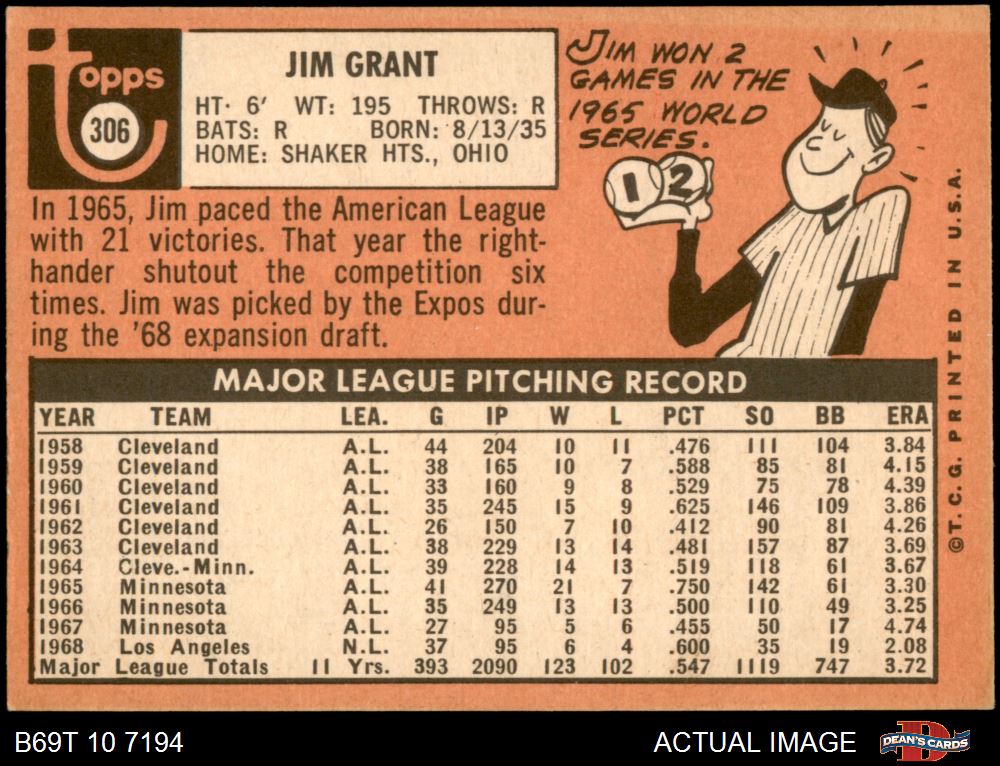 1969 Topps #306 Jim Grant 6.5 - EX/MT+
