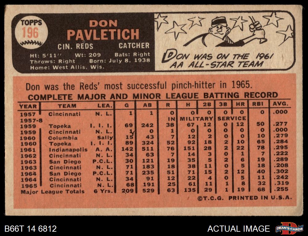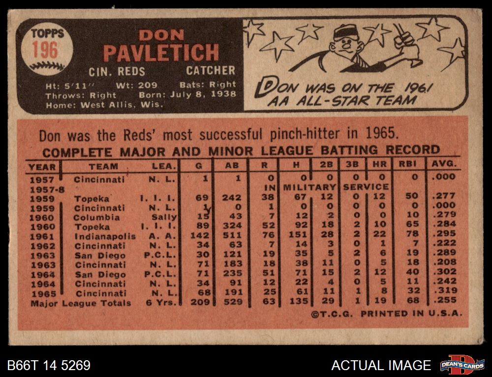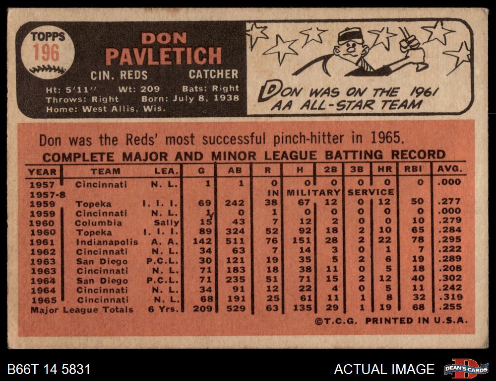 1966 Topps #196 Don Pavletich 2 - GOOD