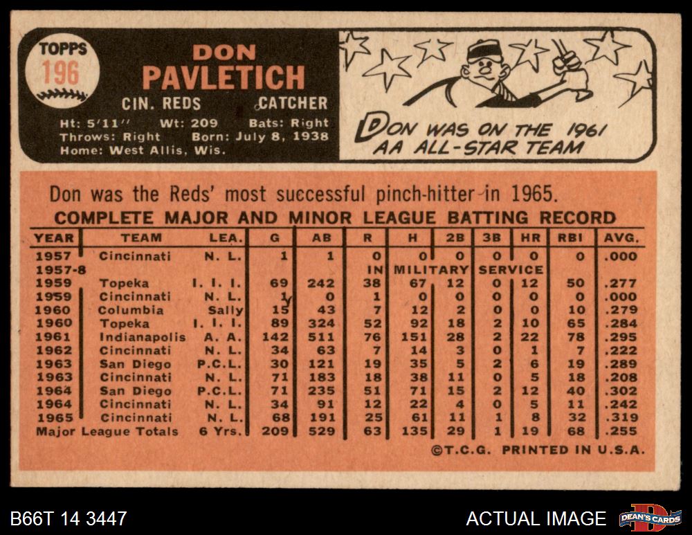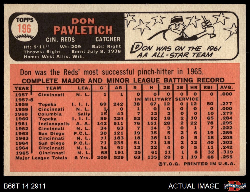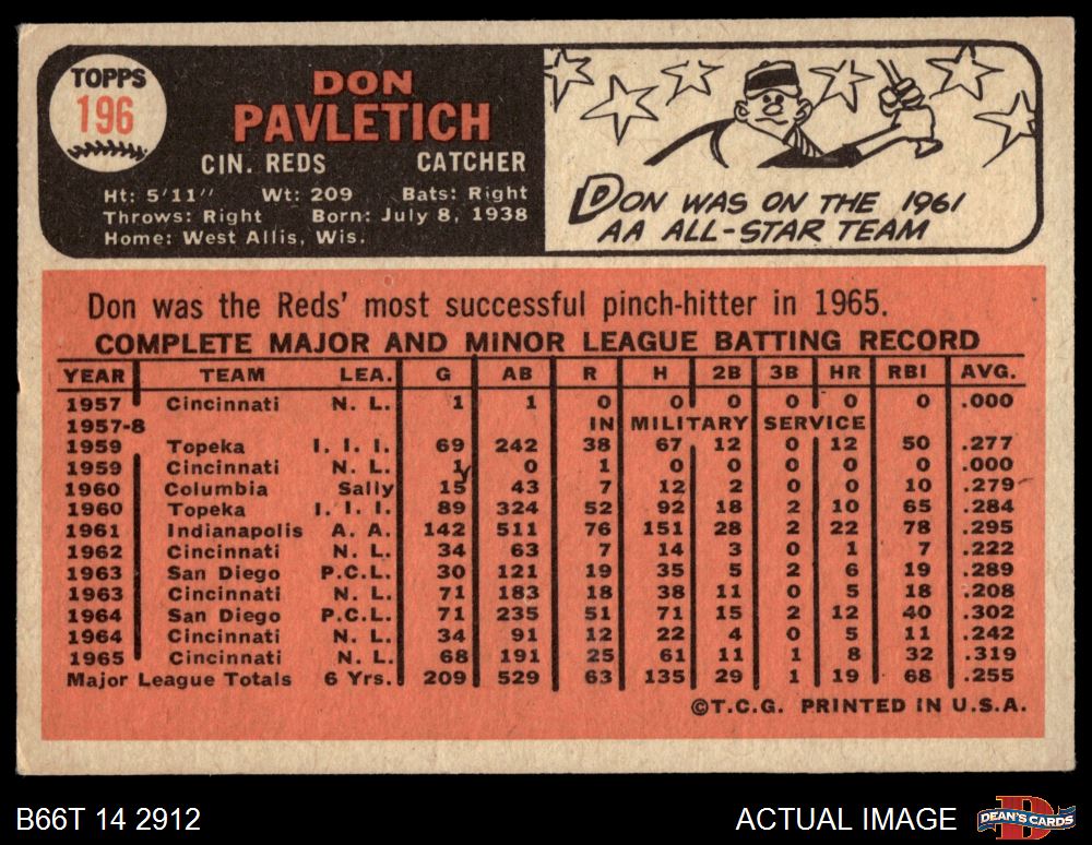 1966 Topps #196 Don Pavletich 4 - VG/EX