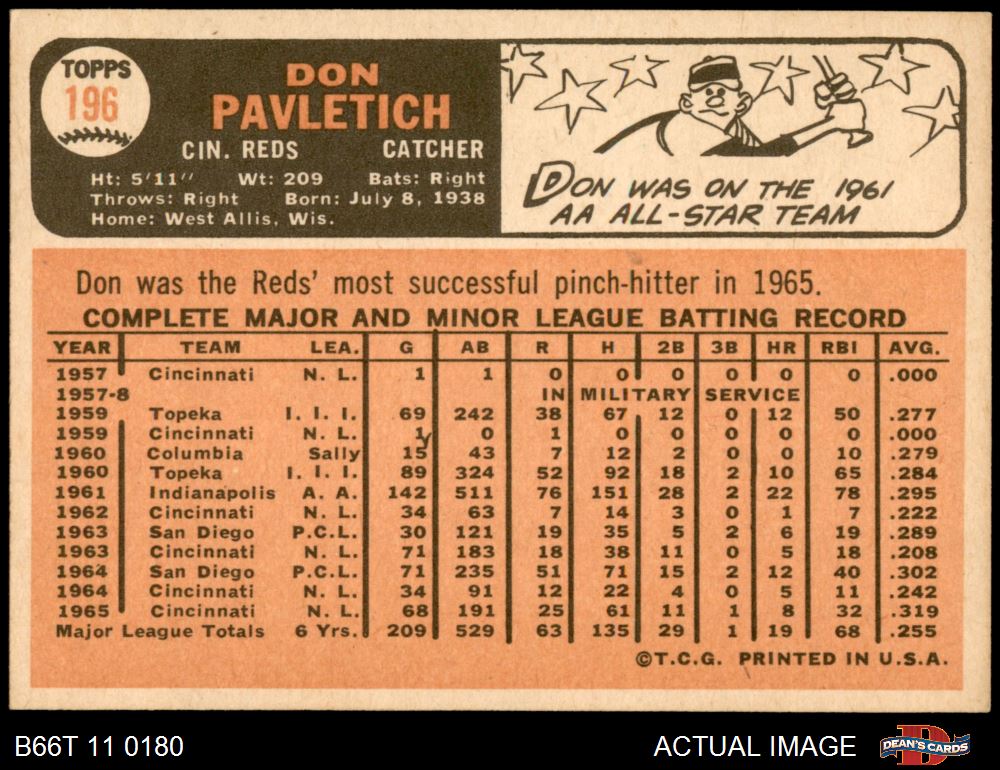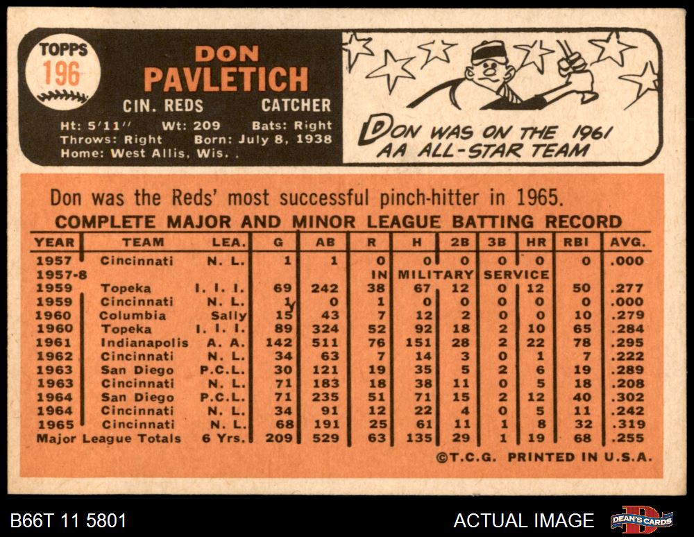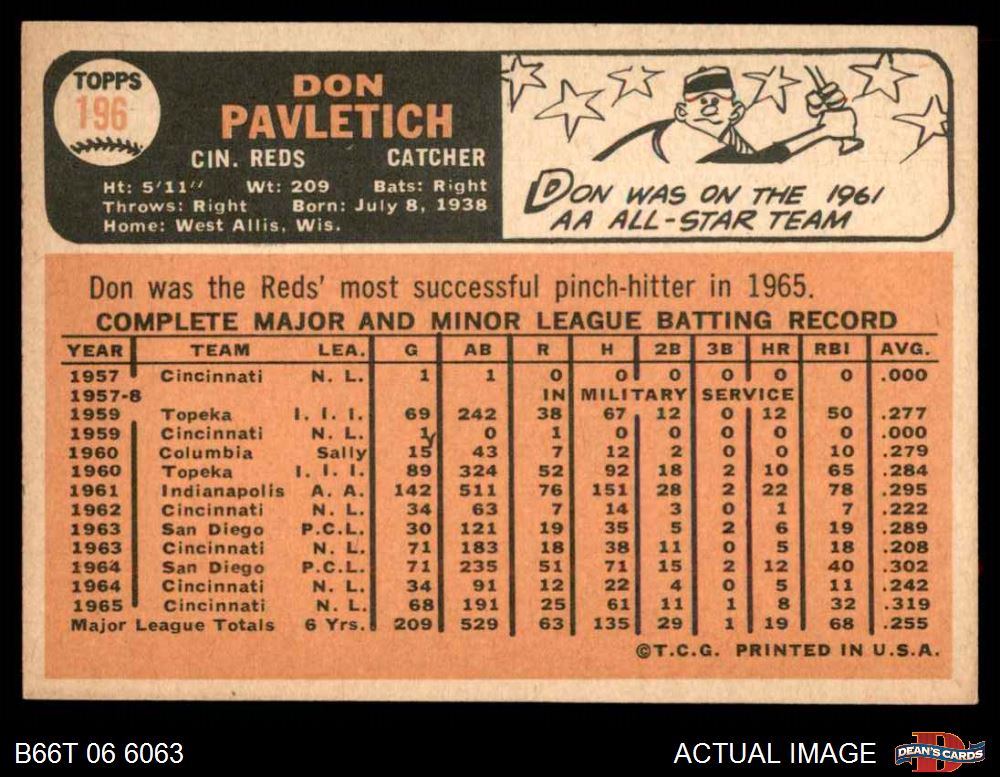 1966 Topps #196 Don Pavletich 6 - EX/MT